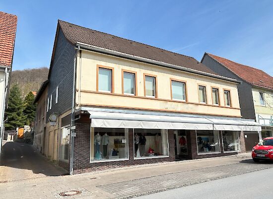 Diese außergewöhnliche Immobilie vereint Wohnen, Arbeiten und Erholung auf beeindruckende Weise und bietet eine Vielzahl an Nutzungsmöglichkeiten. Das Haus, welches um das Jahr 1900 erbaut wurde, besticht durch seine historische Ausstrahlung und seine großzügigen Flächen. Im Erdgeschoss befindet sich eine rund 617 m² große Gewerbefläche, die aktuell als Verkaufsfläche genutzt wird. Durch die breite Schaufensterfront zur Straße eignet sich dieser Bereich ideal für den Einzelhandel, aber auch für Büros, Praxen oder andere gewerbliche Nutzungen. Die zentrale Lage bietet hier beste Voraussetzungen, um Ihr Geschäft optimal zu präsentieren.