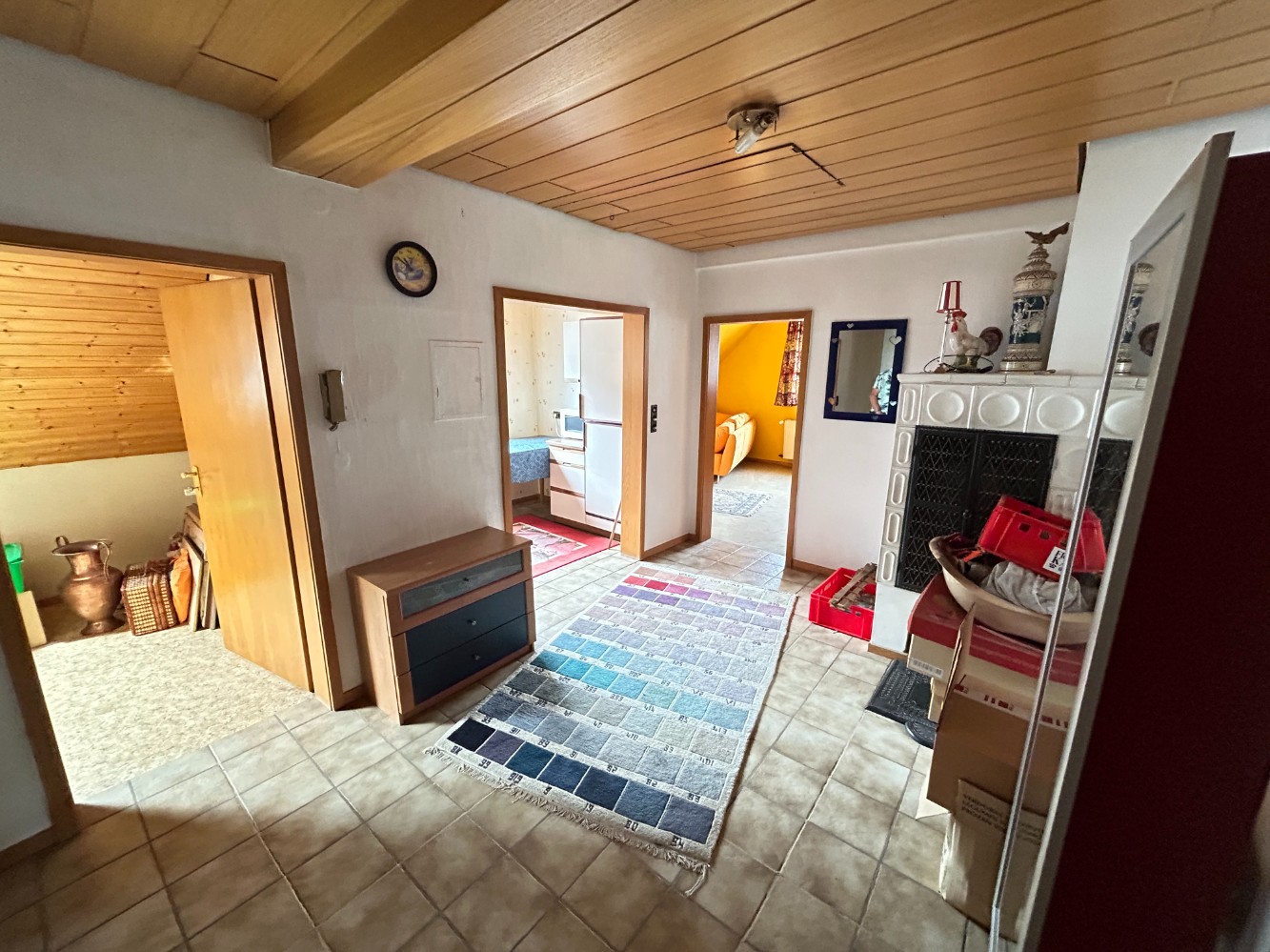 Die Immobilie bietet insgesamt ca. 245 m² Wohnfläche. Helle und freundliche Wohnräume schaffen eine angenehme Atmosphäre. Im Obergeschoss befindet sich ein großes Wohnzimmer mit Kaminofen sowie weitere Zimmer, die flexibel als Schlaf-, Kinder- oder Arbeitszimmer genutzt werden können. Das Dachgeschoss überzeugt mit einem gemütlichen Wohnzimmer samt Kachelofen und einem weiteren Schlafzimmer mit charmanten Schrägdecken.